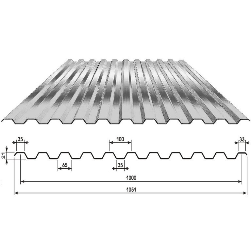 Профнастил НC-35-1000 оцинкованный