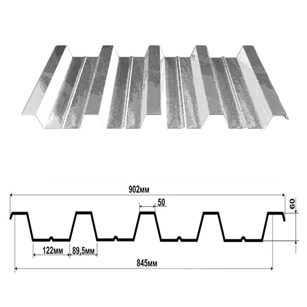 Профнастил Н60-845 оцинкованный